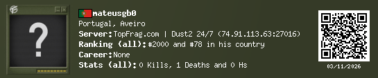 03/11/2026 - 4:49 AM Portugal de_dust2 0 (0) 1 (0) 0 0.02 h