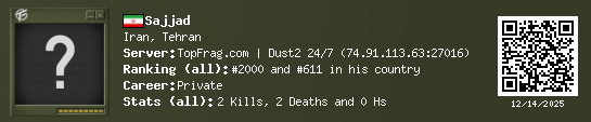 05/09/2025 - 2:06 PM Iran de_dust2 2 (2) 2 (0) 0 0.07 h
