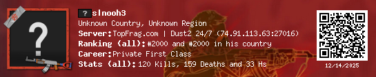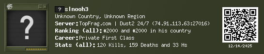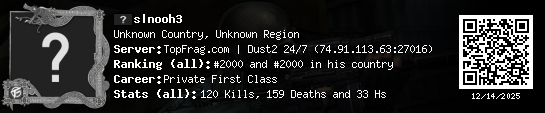 02/28/2025 - 2:36 PM Canada de_dust2 12 (2) 14 (0) 3 0.38 h