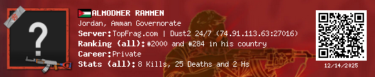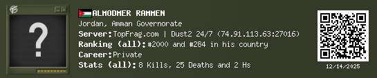 05/02/2025 - 5:24 PM Jordan de_dust2 3 (2) 8 (0) 1 0.26 h