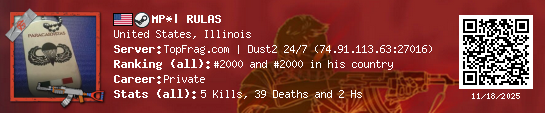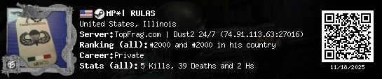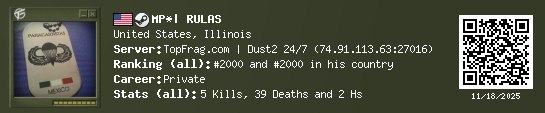 11/17/2025 - 8:04 PM United States de_dust2_snow 0 (0) 10 (2) 0 0.27 h