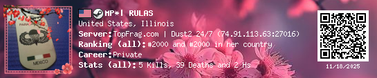 11/16/2025 - 12:27 AM United States de_dust2_snow 0 (0) 5 (0) 0 0.11 h