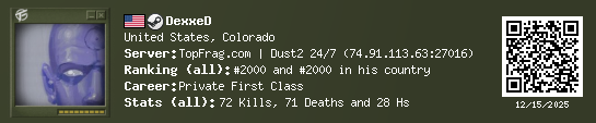 12/11/2025 - 6:42 AM United States de_dust2_snow 20 (3) 19 (0) 8 0.35 h