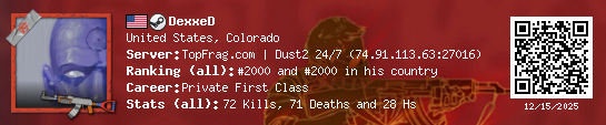 12/14/2025 - 7:24 AM United States de_dust2_snow 5 (2) 13 (0) 2 0.23 h