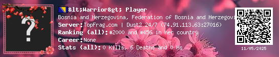 [url="https://topfrag.com/shop/playerinfo.php?id_profile=83944&id_server=1"][img]https://topfrag.com/shop/signature.php?id_profile=83944&id_server=1&theme=0[/img][/url]