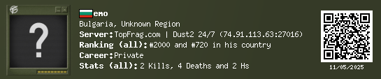 [url=https://topfrag.com/shop/playerinfo.php?id_profile=83946&id_server=1][img]https://topfrag.com/shop/signature.php?id_profile=83946&id_server=1&theme=0[/img][/url]