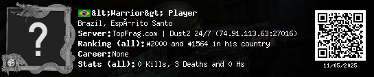 [url=https://topfrag.com/shop/playerinfo.php?id_profile=83966&id_server=1][img]https://topfrag.com/shop/signature.php?id_profile=83966&id_server=1&theme=0[/img][/url]
