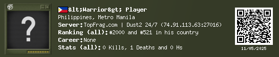 [url=https://topfrag.com/shop/playerinfo.php?id_profile=83969&id_server=1][img]https://topfrag.com/shop/signature.php?id_profile=83969&id_server=1&theme=3[/img][/url]