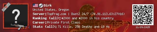 11/27/2025 - 9:11 AM United States de_dust2_snow 0 (0) 1 (0) 0 0.02 h