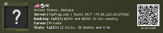 12/21/2025 - 6:05 PM United States de_dust2_snow 0 (0) 9 (0) 0 0.19 h