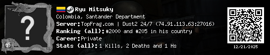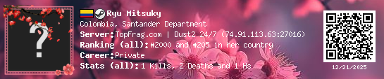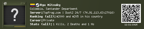 12/21/2025 - 6:32 PM Colombia de_dust2_snow 1 (1) 2 (0) 1 0.06 h
