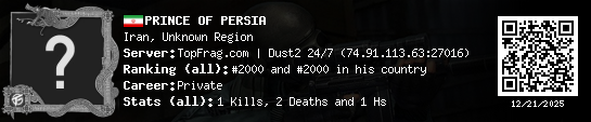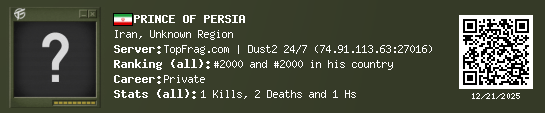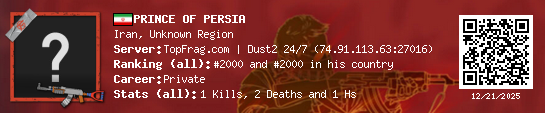 12/21/2025 - 6:48 PM Iran de_dust2_snow 1 (1) 2 (0) 1 0.05 h
