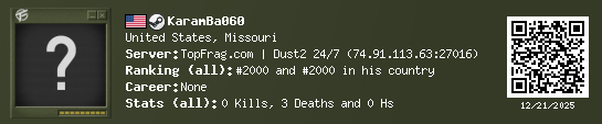 12/21/2025 - 6:56 PM United States de_dust2_snow 0 (0) 2 (0) 0 0.03 h