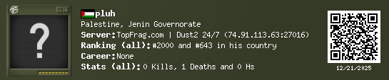 12/21/2025 - 7:50 PM Palestine de_dust2_snow 0 (0) 1 (0) 0 0.02 h