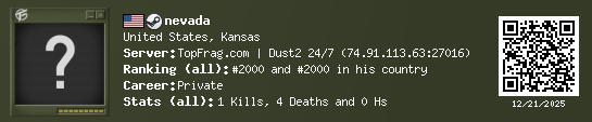 12/21/2025 - 8:31 PM United States de_dust2_snow 1 (1) 4 (0) 0 0.09 h