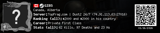 01/15/2026 - 1:49 AM Canada de_dust2 0 (0) 1 (0) 0 0.04 h