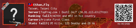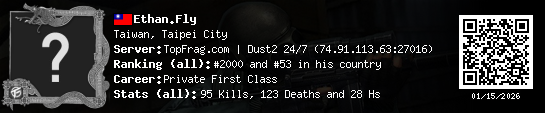 01/14/2026 - 12:25 PM Taiwan de_dust2 0 (0) 1 (0) 0 0.02 h