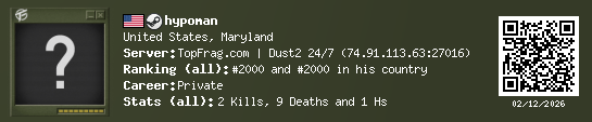 02/11/2026 - 9:39 PM United States de_dust2 2 (1) 9 (0) 1 0.23 h