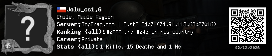 02/11/2026 - 9:59 PM Chile de_dust2 1 (1) 15 (0) 1 0.42 h