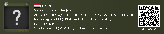 02/11/2026 - 11:20 PM Syria de_inferno 0 (0) 0 (0) 0 0.02 h