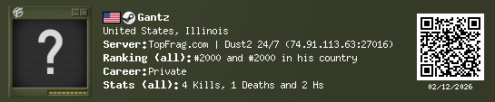 02/11/2026 - 11:43 PM United States de_dust2 4 (2) 1 (0) 2 0.08 h