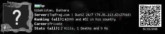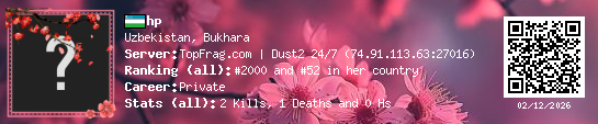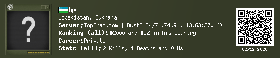 02/12/2026 - 3:00 AM Uzbekistan de_dust2 2 (2) 1 (0) 0 0.04 h