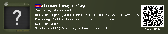 03/04/2026 - 3:27 AM Cambodia de_nuke 0 (0) 2 (0) 0 0.01 h