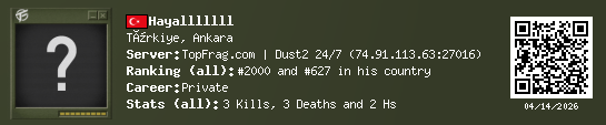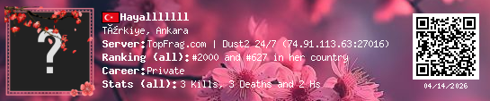 03/16/2026 - 8:26 AM TΓΌrkiye de_dust2 2 (2) 2 (0) 1 0.06 h
