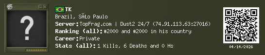 03/16/2026 - 9:33 AM Brazil de_dust2 1 (1) 5 (1) 0 0.12 h