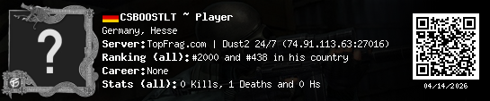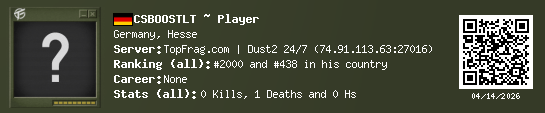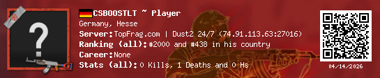 03/16/2026 - 11:23 AM Germany de_dust2 0 (0) 1 (0) 0 0.03 h