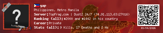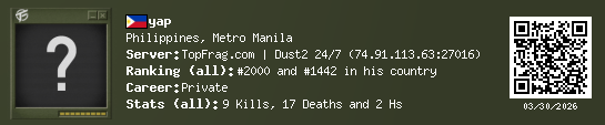 03/30/2026 - 2:11 AM Philippines de_dust2 4 (2) 8 (0) 1 0.16 h