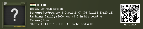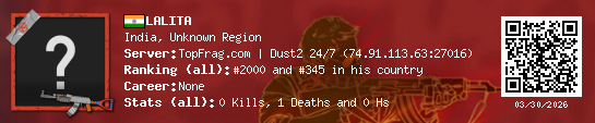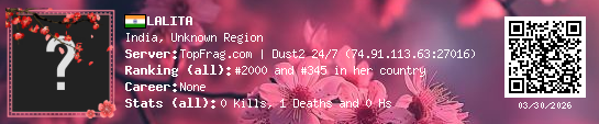 03/30/2026 - 2:14 AM India de_dust2 0 (0) 1 (0) 0 0.01 h