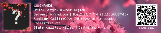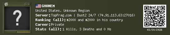 03/30/2026 - 5:41 AM United States de_dust2 1 (1) 3 (0) 0 0.09 h