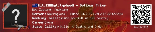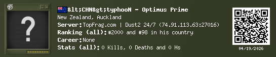 04/19/2026 - 3:16 AM New Zealand de_dust2 0 (0) 0 (0) 0 0 h