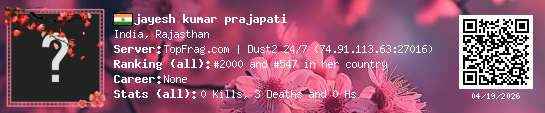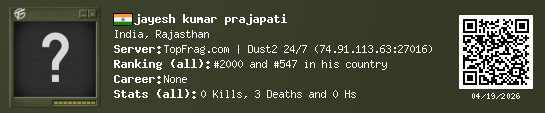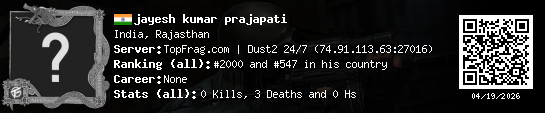 04/19/2026 - 3:20 AM India de_dust2 0 (0) 3 (0) 0 0.07 h