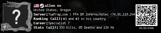 02/22/2026 - 2:00 AM United States de_aztec 191 (0) 54 (0) 79 0.33 h