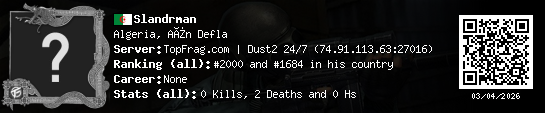 01/20/2026 - 4:02 PM Algeria de_dust2 0 (0) 2 (0) 0 0.04 h