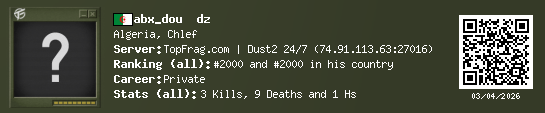 01/20/2026 - 4:20 PM Algeria de_dust2 0 (0) 0 (0) 0 0 h