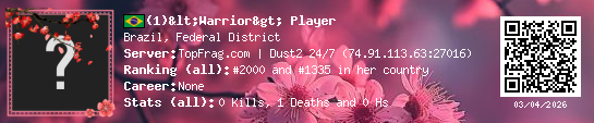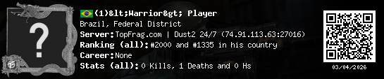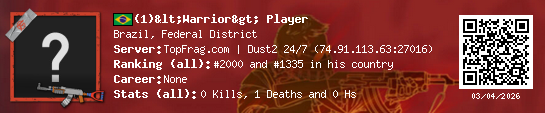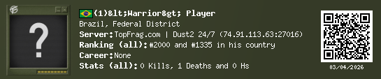 01/20/2026 - 4:14 PM Brazil de_dust2 0 (0) 1 (0) 0 0.02 h