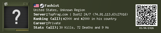 02/28/2026 - 4:26 PM Russia de_dust2 8 (2) 23 (0) 1 0.58 h