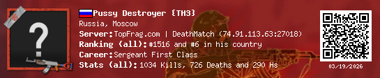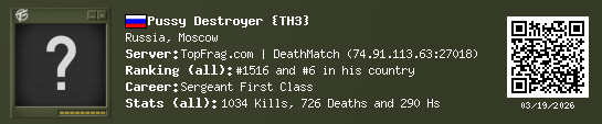 03/11/2026 - 8:11 PM Russia cs_deagle5 33 (0) 26 (0) 7 0.15 h