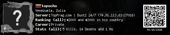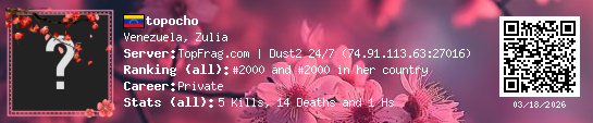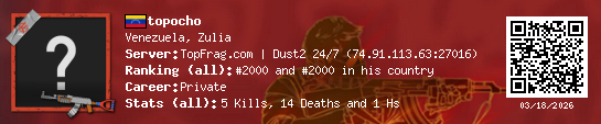 03/18/2026 - 7:36 PM Venezuela de_dust2 1 (1) 4 (0) 0 0.15 h