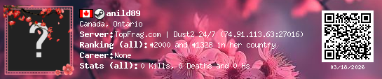 03/18/2026 - 3:51 PM Canada de_dust2 0 (0) 0 (0) 0 0 h