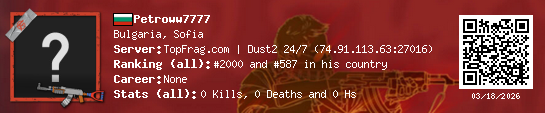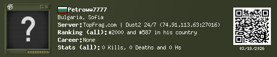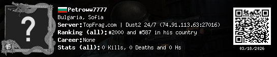 03/18/2026 - 4:25 PM Bulgaria de_dust2 0 (0) 0 (0) 0 0 h