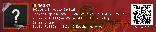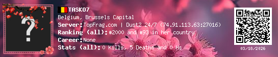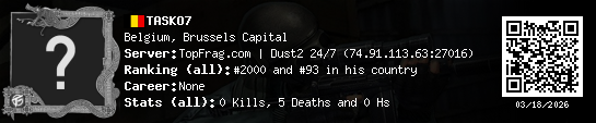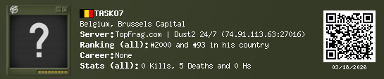 03/18/2026 - 4:42 PM Belgium de_dust2 0 (0) 5 (0) 0 0.12 h