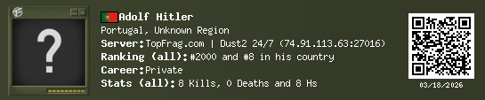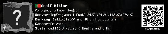 03/18/2026 - 5:16 PM Portugal de_dust2 8 (8) 0 (0) 8 0.02 h