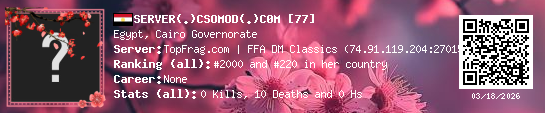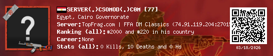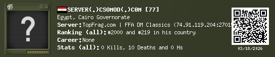 03/18/2026 - 5:38 PM Egypt de_train 0 (0) 8 (0) 0 0.02 h