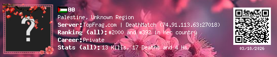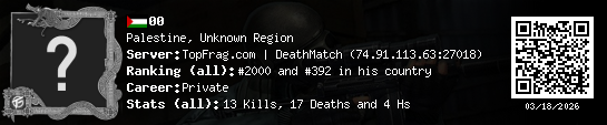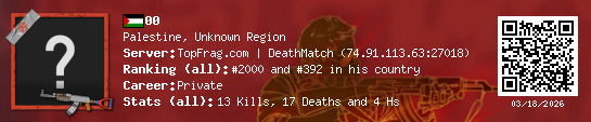 03/18/2026 - 5:46 PM Palestine fy_buzzkill 13 (0) 17 (0) 4 0.09 h
