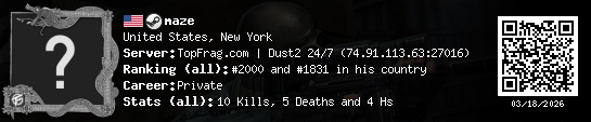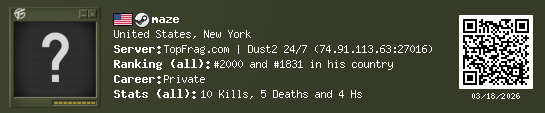 03/18/2026 - 7:48 PM United States de_dust2 9 (6) 2 (0) 4 0.08 h